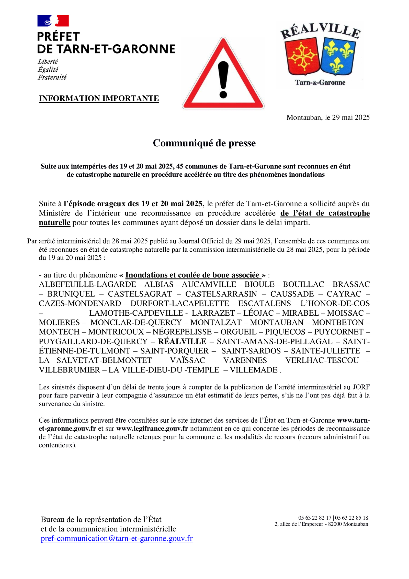 LA COMMUNE DE RÉALVILLE N'EST PAS RECONNUE COMME CATASTROPHE NATURELLE SECHERESSE