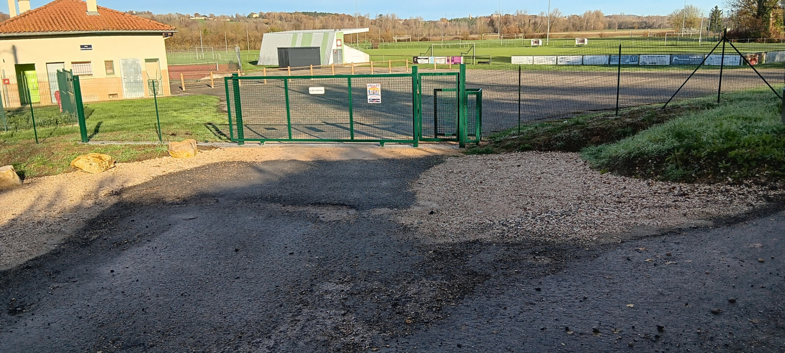 l'accès piéton du stade et du terrain de tennis restent accessibles par le portillon